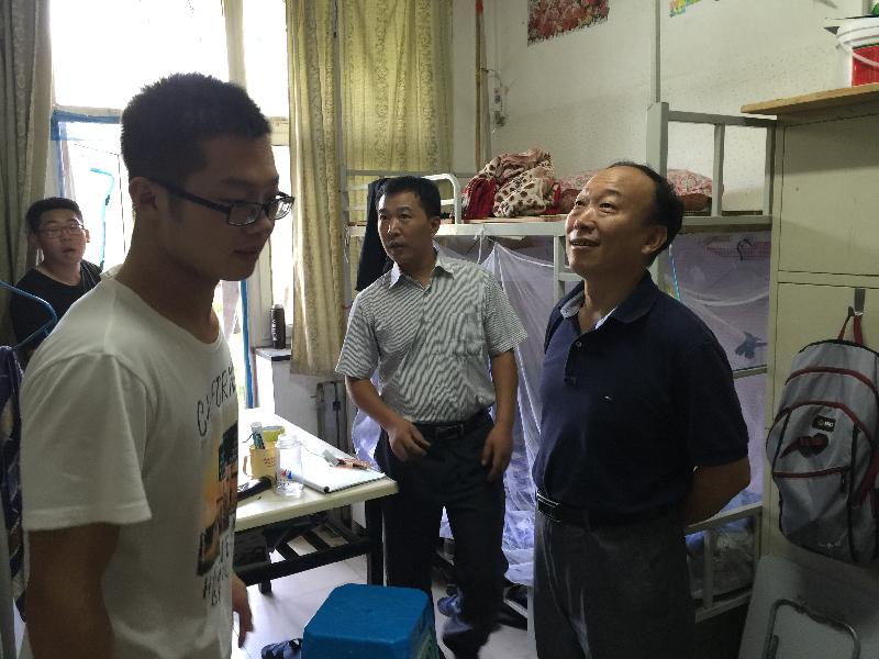 新学期,新气象。为使学生以良好的精神面貌迎接新学期,保证学生安全卫生的生活环境,做好学生宿舍的卫生、安全与管理工作,规范住宿行为,消除安全隐患, 8月31日国际教育学院进行了新学期宿舍大检查。国际教育学院党总支书、团总支负责同志等参加了此次检查活动。 党总支书记对学生宿舍的阳台、洗手间、床铺、地板等进行仔细查看,对整洁进步的宿舍给予表扬;对物品摆放杂乱、有异味的宿舍责令当场打扫;对工作细节处存在的问题,一一提出了整改意见。通过此次检查,督促同学们养成良好的学习、生活习惯,保持优良的作风,共同创建安全卫生、文明和谐的校园环境。