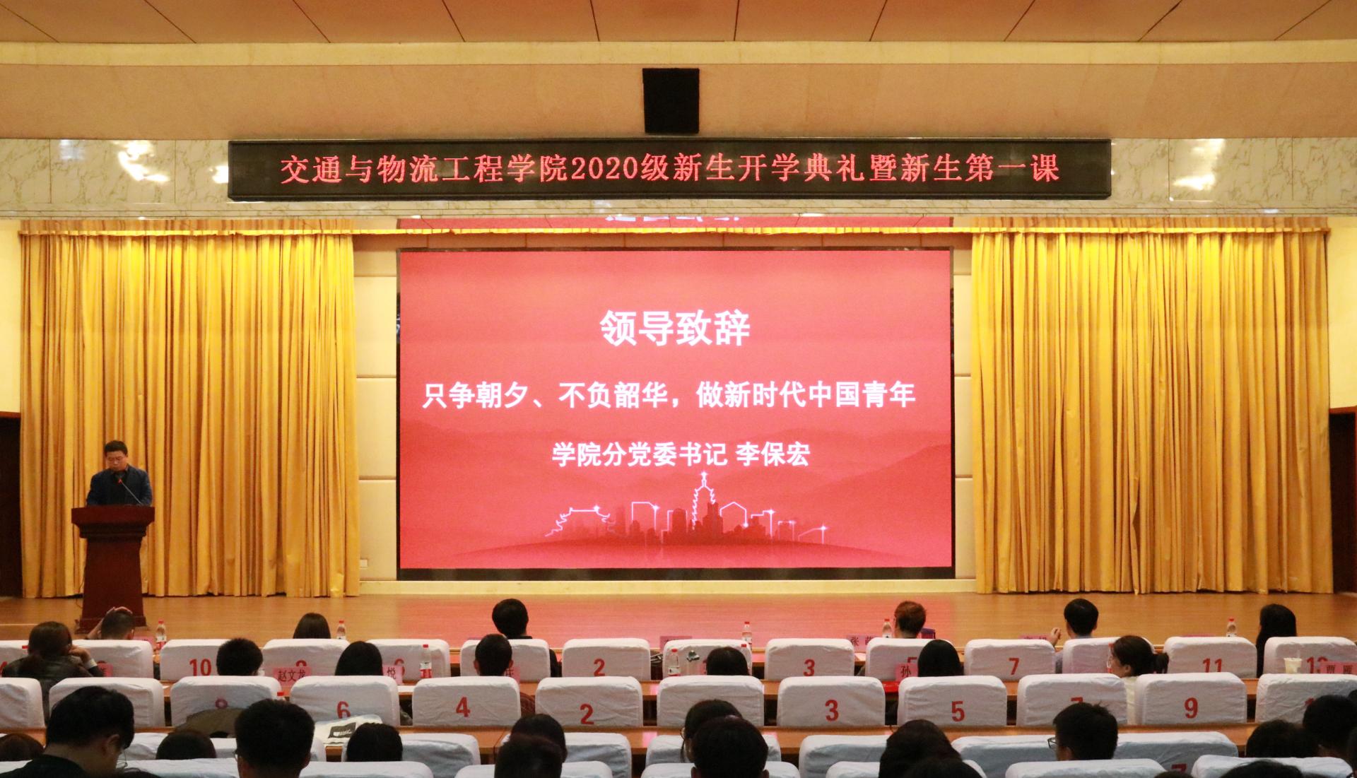 2020年10月8日晚,交通与物流工程学院2020级新开学典礼暨新生第一课在长清校区学术报告厅顺利举行。学院领导班子、老师们、学生代表、全体新生参加典礼。典礼由分党委副书记宁兴旺主持。
